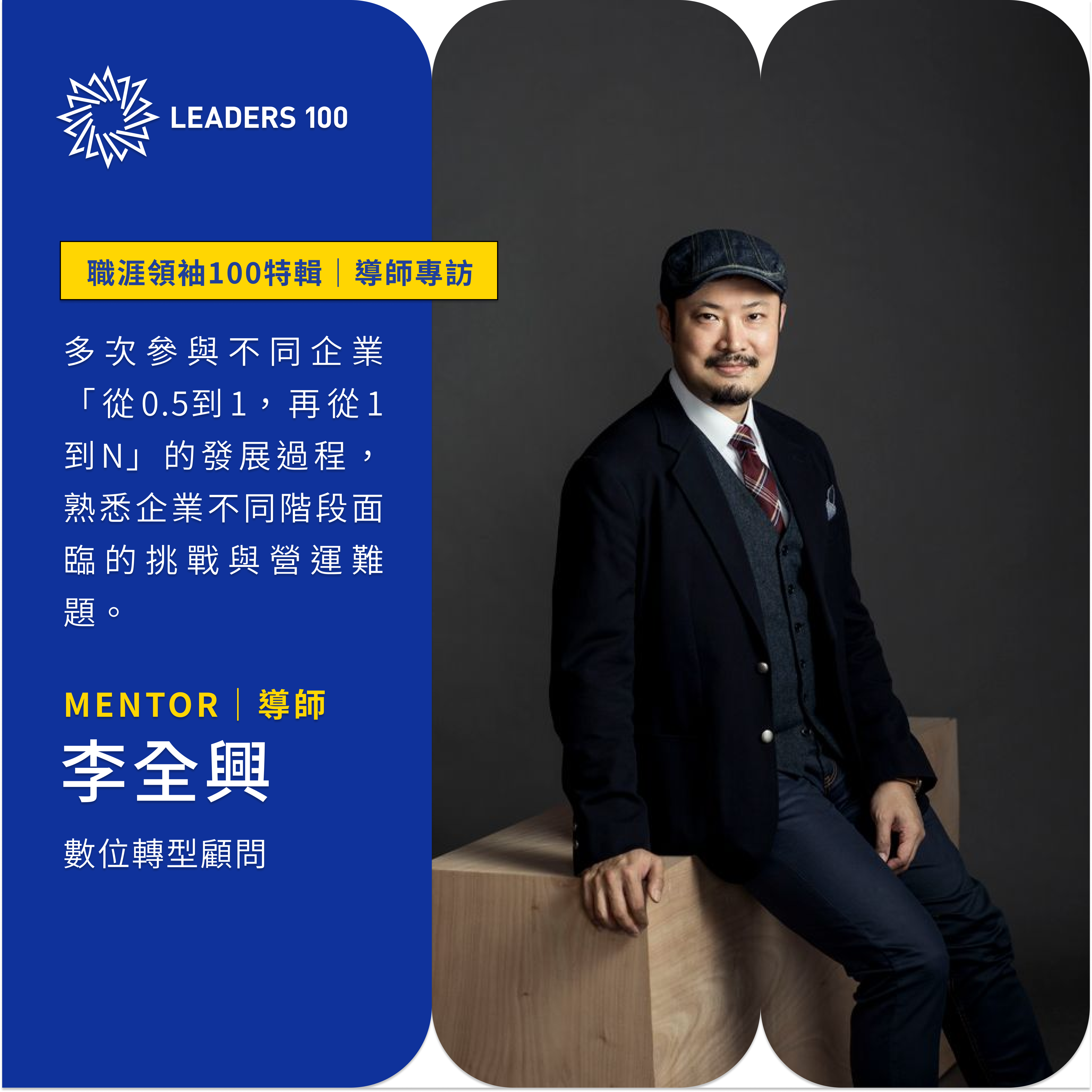 周知微2024-10-28T17:48:01+08:00訪談者 導生:Freda / Ariel 2024-09-23 邱亮士|在越來越多元的職場你永遠都可以選擇多點同理心 讓我發掘自己的領導天賦 作為主管和導師,Alex 發現自己最大的優勢在於敏銳的個性。他能通過互動與對話,精確感知每個人的狀態,甚至看穿問題背後的隱藏因素。 這種能力的培養來自於多方面的因素,包括他本身的天賦、適時的機會以及導師的提點。Alex 在職涯中多次受益於導師的指引,尤其是在 J.P. Morgan 任職期間,領袖100的發起人之一石恬華(Judy)給予了他巨大的啟發和支持。Judy 總是能夠準確發掘每個人的潛力,並提供具建設性的建議。Alex 在與這些傑出的領導者互動中,逐漸培養出屬於自己的領導風格。 「領導力確實部分來自天賦,但對人的好奇心與同理心是可以後天培養的。成為一個好聊的人,永遠不會錯!」 在 J.P. Morgan 任職時,Alex 接下了「產品與行銷事業部主管」的職務,這是一個全新的挑戰。不僅讓他從產品的角度重新思考投資商品,還讓他在這個新角色中發揮了策略制定與遠見能力,為他的職涯帶來了新的突破。 成為領袖100的導師後,Alex 深刻體會到,擔任導師不僅僅是對導生的指導與幫助,對他自己而言,更是一個重大的成長契機。透過與導生的交流,Alex 不僅強化了自己的領導技能,還在反思與回顧中找到了新的領導力啟示。他說:「擔任導師不僅是傳遞知識和經驗,更是一個自我成長和提升的過程。」這種雙向學習的過程,讓 Alex 的領導能力變得更加多元化與豐富。 擔任導師的過程:傾聽與理解導生的處境 在五屆的領袖100導師經歷中,Alex 善用了他的領導天賦「同理心」,深入了解每位導生的獨特需求與人生階段。與導生的對話,要像職場中的溝通一樣,從理解不同的角度開始,才能有效地發揮作用。 針對「都當到主管了,我不能堅持做自己嗎?」這個問題,Alex 分享了他在不同導生中所面對的冷靜與熱情的兩個極端例子:有些導生充滿活力,能滔滔不絕地分享自己的經歷,在這種情境下,他只需適時提供相似的經歷即可;而對於另一類極度冷靜、理性,對談中注重邏輯且相當謹慎的導生,他則需要更多的準備,並引導對方開放地對談。 在歷時一年的對話中,Alex 通常能漸漸分辨每位導生所處的不同職涯階段。關鍵往往不在於直接回答導生的問題,而是給予他們多元的視角,幫助他們自問自答,進而發掘出自己的答案。 根據 Alex 的經驗,每次一對一的交流都像是一場深刻的靈魂對話。即使當下無法立即回答,他提出的問題往往能引發導生在接下來幾天中的不斷反思,幫助他們找到真正的答案。 在外商環境中,用尊重多元性來留住人才 Alex 分享了他在外商工作的經驗,強調同理心在當今多元職場中的重要性。雖然外商的工作壓力大,但這些公司非常重視對人多元性的尊重與同理心。這樣的文化不僅有助於留住真正的人才,還能在多元化的環境中激發出更多可能性。 在這些外商公司中,儘管對績效的要求極高,但他們也創造了一個可以安全表達自己想法的空間,讓員工能在更高層次上進行就事論事的討論,從而發揮最大的潛能。當然,每個人在這樣的環境中,都需要不斷訓練不衝突的溝通技巧,並提升自我情緒管理的能力。 離開外商後的心境變化:從為公司賣命到追尋真正的夢想 最後,Alex 談到離開外商創業後的心境變化。作為一名創業者與員工之間,確實存在巨大的心境差異。工作的本質從為公司賣命,轉變為追尋自己真正想做的事情。然而,隨之而來的壓力也不容忽視,尤其是面對自我焦慮與內心掙扎。 或許 Alex 仍在這段新的旅程中努力著,但正是過去這些擔任導師以及受導師幫助的經歷,讓他能夠更加堅定地追尋自己的理想。他期望未來能通過自己創辦的 Alpha plus 實現讓台灣職場更加多元且富有同理心的願景,也讓人才能夠覺醒追求更好的自己,而我們也很幸運的有Alex繼續在領袖100和我們年輕而充滿熱情的靈魂對談。 JOIN US 2025 年 準備好遇見自己的職涯貴人 申請加入